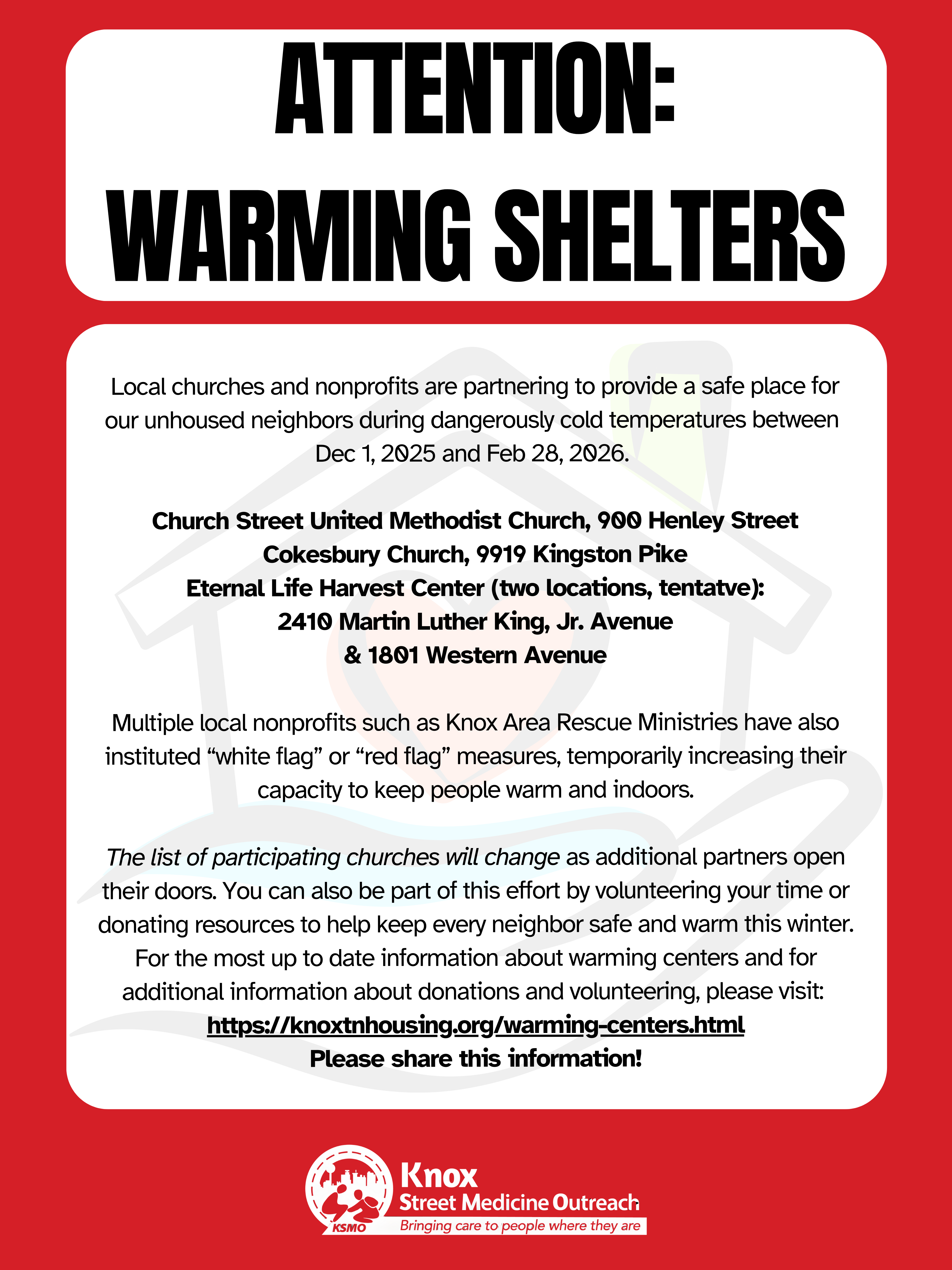 For the most up to date information on warming centers, visit this link.