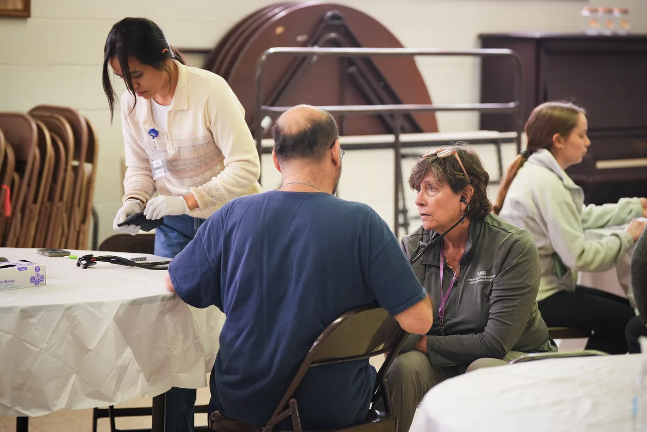 A second and third year LMU DCOM student volunteering at the new KSMO clinic!